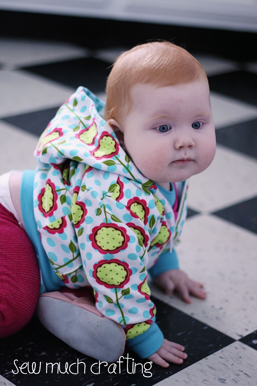 My little Cecelia is now 15 months, and never sits still, so she's pretty much impossible to photograph! But we tried our best. She is such a busy-body, and this dress is perfect for this age. It's comfortable, but looks adorable. I love the curved bodice and full skirt--it makes it look dressy without sacrificing comfort. The puff sleeves are also the perfect touch. With this pattern you can use a combo of knits and woven fabrics, or all knits, as I did for this dress. I used cotton interlocks in pink and blue, and added a cute lil' snowman with heat transfer vinyl and my Silhouette cutting machine. I also added a glittery snowflake to one sleeve. Cecelia is wearing a 2T in ready-to-wear clothing, so for this dress I cut out the 24 months/2T size, and as you can see, the fit is great. It has just enough growing room without looking huge on her. The pattern was easy to sew and only took a couple of hours. Bonnie's instructions are always very good, and include many pictures. My favorite part about Fishsticks Designs Patterns are the patterns themselves. I really like how the PDF patterns print and are assembled. I know some sewists aren't a fan of nested patterns as the initial printing and taping can be daunting, but I find it so much easier to make changes to a set of nested patterns than just single sized pieces.